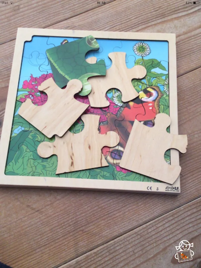 Aim your tablet or phone on the wooden puzzle and the puzzle comes to life. Each beautiful drawing changes in a fascinating short film.