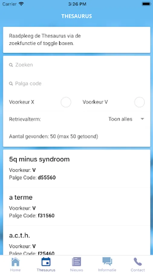 Stichting Palga APP for the purpose of providing information and being able to consult the Thesaurus in a handy format.