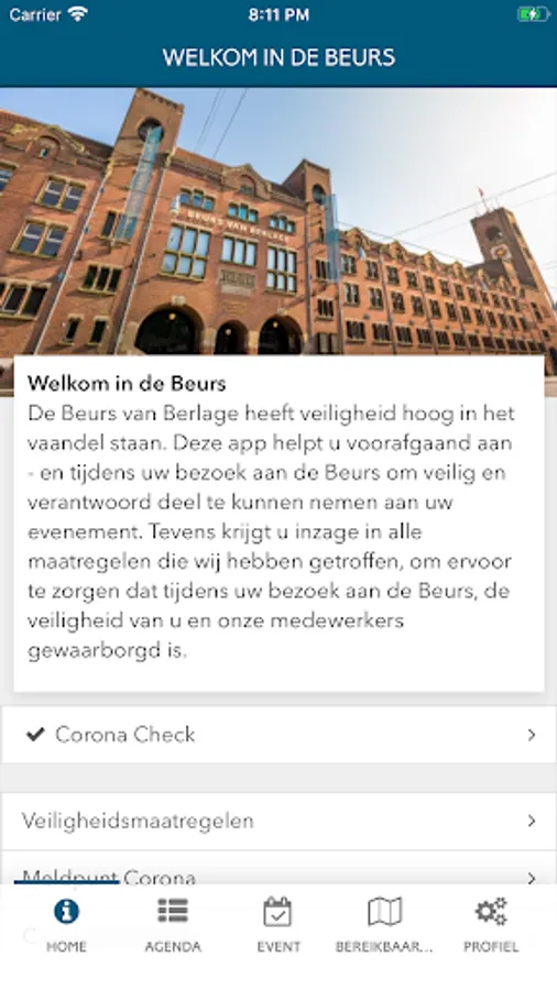 The Beurs van Berlage attaches great importance to safety. This app will help you to participate in your event safely and responsibly prior to and during your visit to the Fair. You will also have access to all measures that we have taken to ensure that the safety of you and our employees is guaranteed during your visit to the Fair. Curious about the fastest route to the Beurs, or which entrance at which time you should choose to avoid waiting? Select your arrival time in the app. Look at the places where lunch is served and also which places in the Beurs are better to avoid if it gets too busy. Would you like to join a session, but is it full? Then follow the session virtually, simply via the app. With this app you can safely and responsibly visit the Beurs van Berlage.