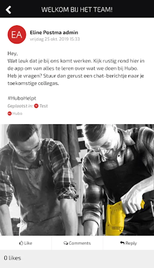 Hubo Connect is the app for your work! The app has been specially developed for you as an employee and helps you work well together and deliver the best quality for your customers. In the app you receive the latest news from Hubo, you can communicate with your colleagues via the chat and you can share information, videos and photos with each other on the timeline of your own location. You can also compete with your colleagues or other Hubo stores by earning as many points as possible in the quizzes. With that you can win great prizes!