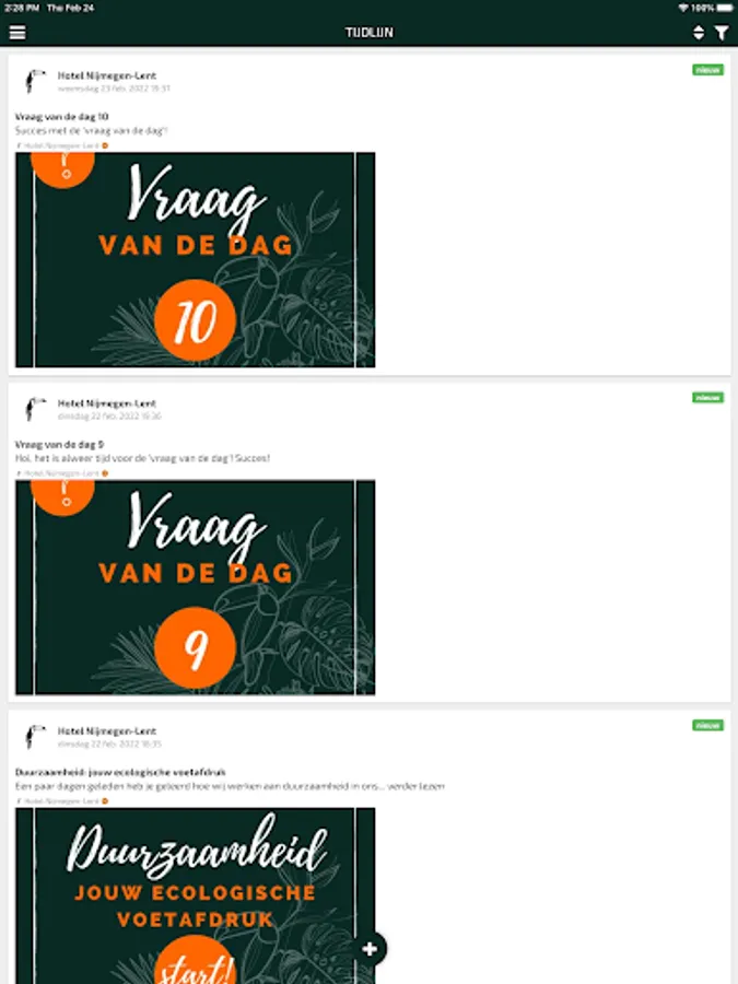 The Van der Valk app has been specially developed for you as an employee and helps you to achieve the best quality for your guests. The app helps you to stay connected with each other and the hotel. In this app you receive the latest news, you can communicate with your colleagues via chat, you can share information, videos and photos with each other on the timeline and you can create challenges.