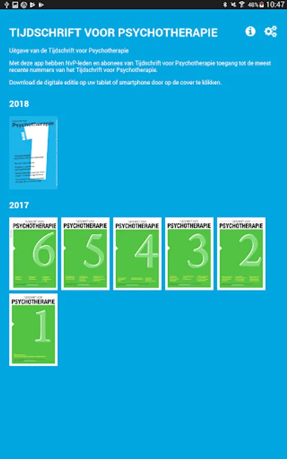 The app Journal of Psychotherapy, subscribers and NVP members download and read magazines.