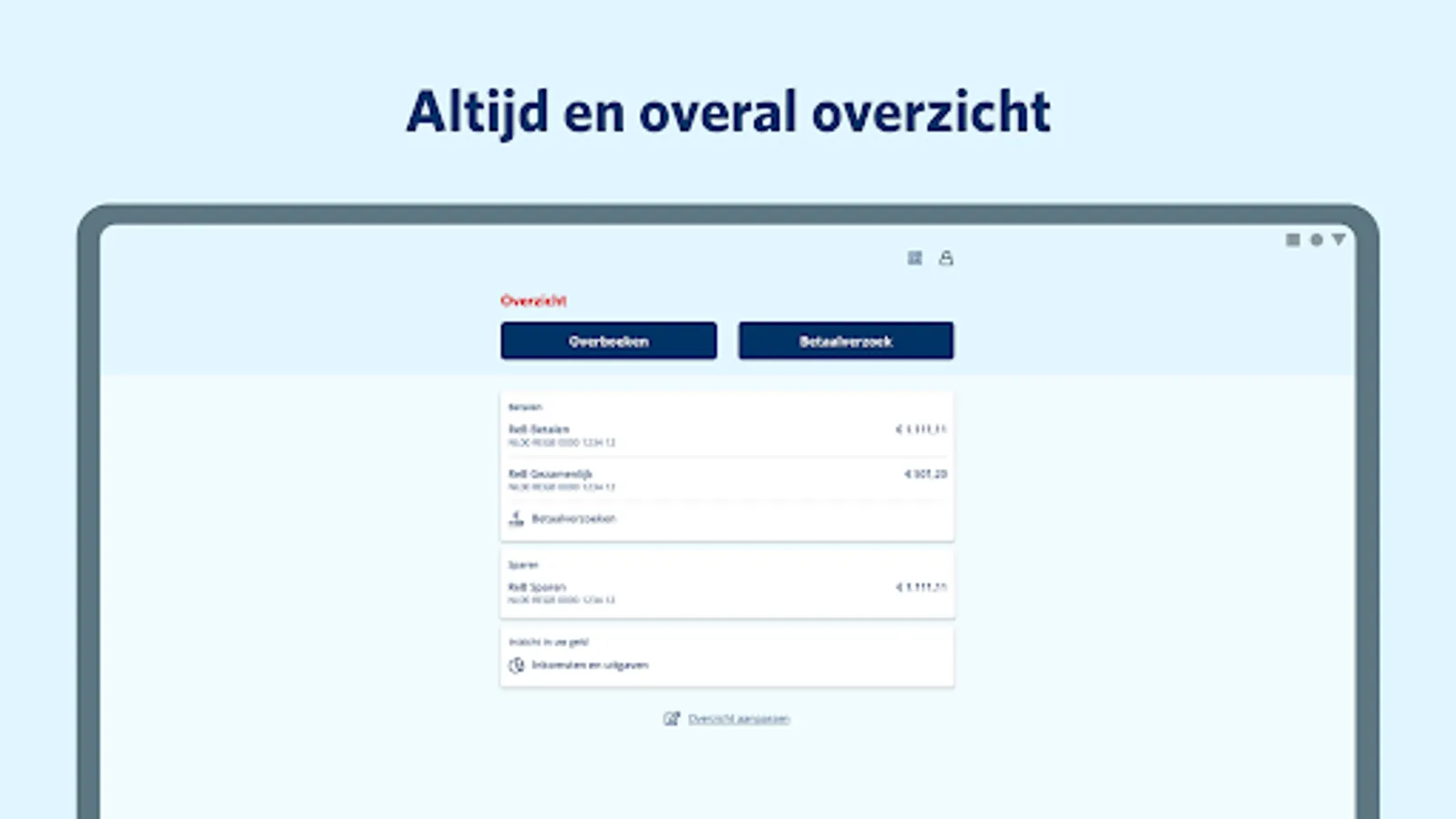 You can use the app with a private account or mortgage. Are you a business customer? Then use the Business Mobile Banking app to arrange your banking affairs.