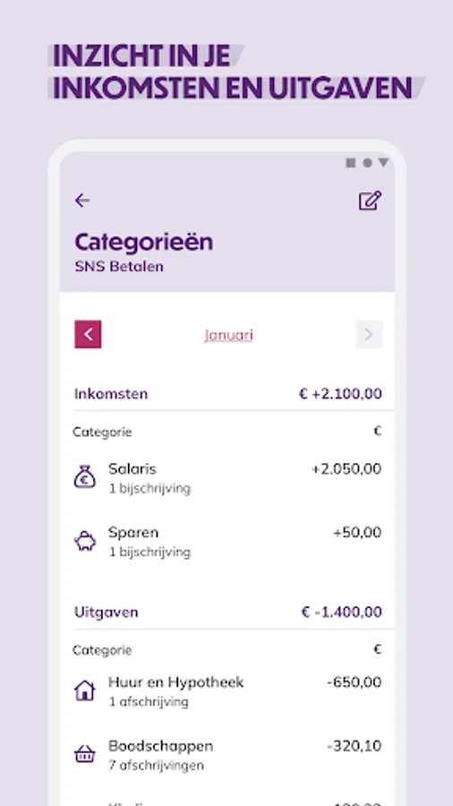 Quickly check your balance, send a payment request or pay that bill. With the new SNS App you can easily arrange your banking affairs anytime, anywhere. You can use the new app with a private account, insurance or mortgage.