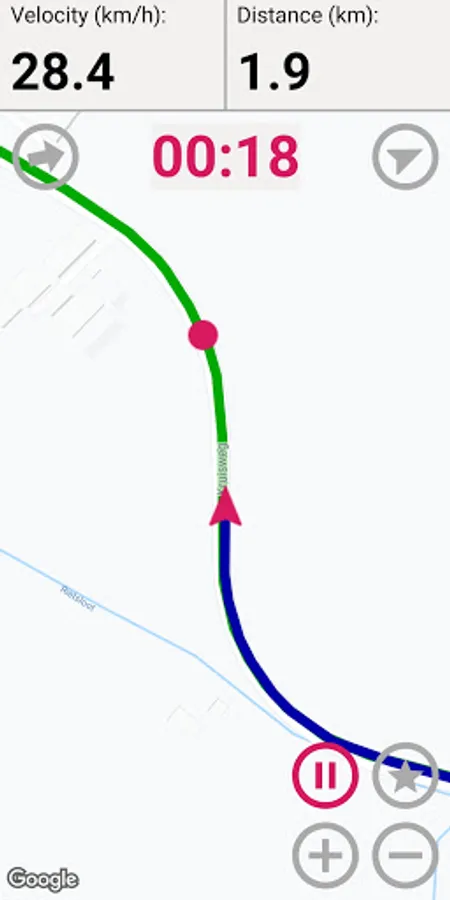You can compare your progress against a previous track. Your competitor is shown as a dot on the map and the time difference is shown in red (behind) or green (ahead).