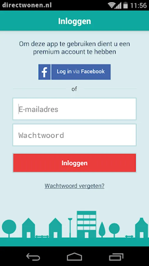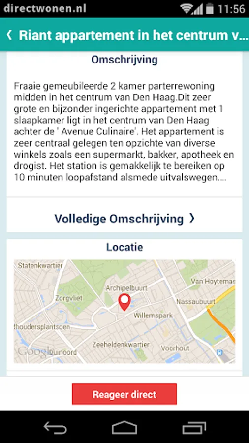 The free Direct Wonen app enables all users that have a Premium account on directwonen.nl to enjoy the most important functionality of the website, on their smartphone. With the app you can see new houses, search through all listings and send landlords of offered houses a direct message. Off course you can also see the replies of the landlords to your direct message and make it easy for yourself to find a house.