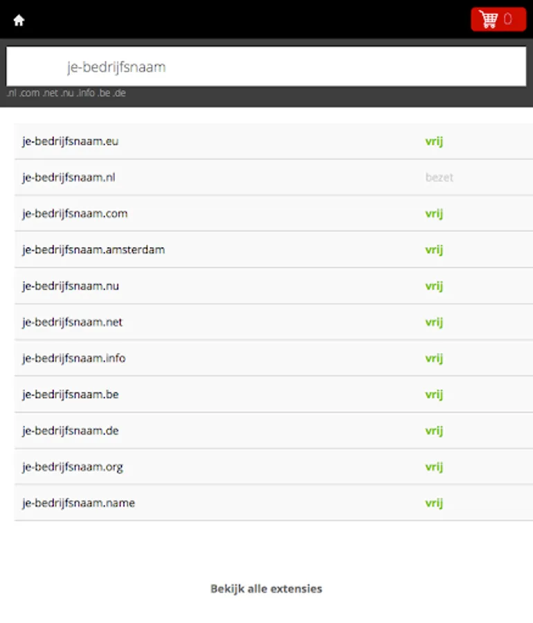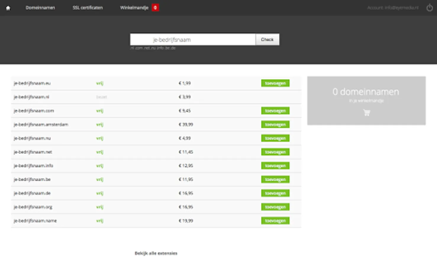 Domeinnaam zoeken - Mijn DNR Screenshots