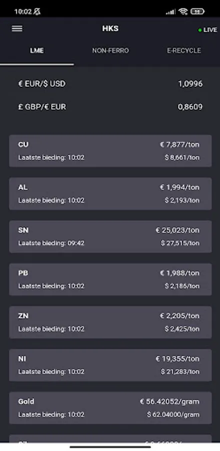 Application for employees of HKS Metals. With the help of this app, among other things, prices of Fast Markets can be followed.