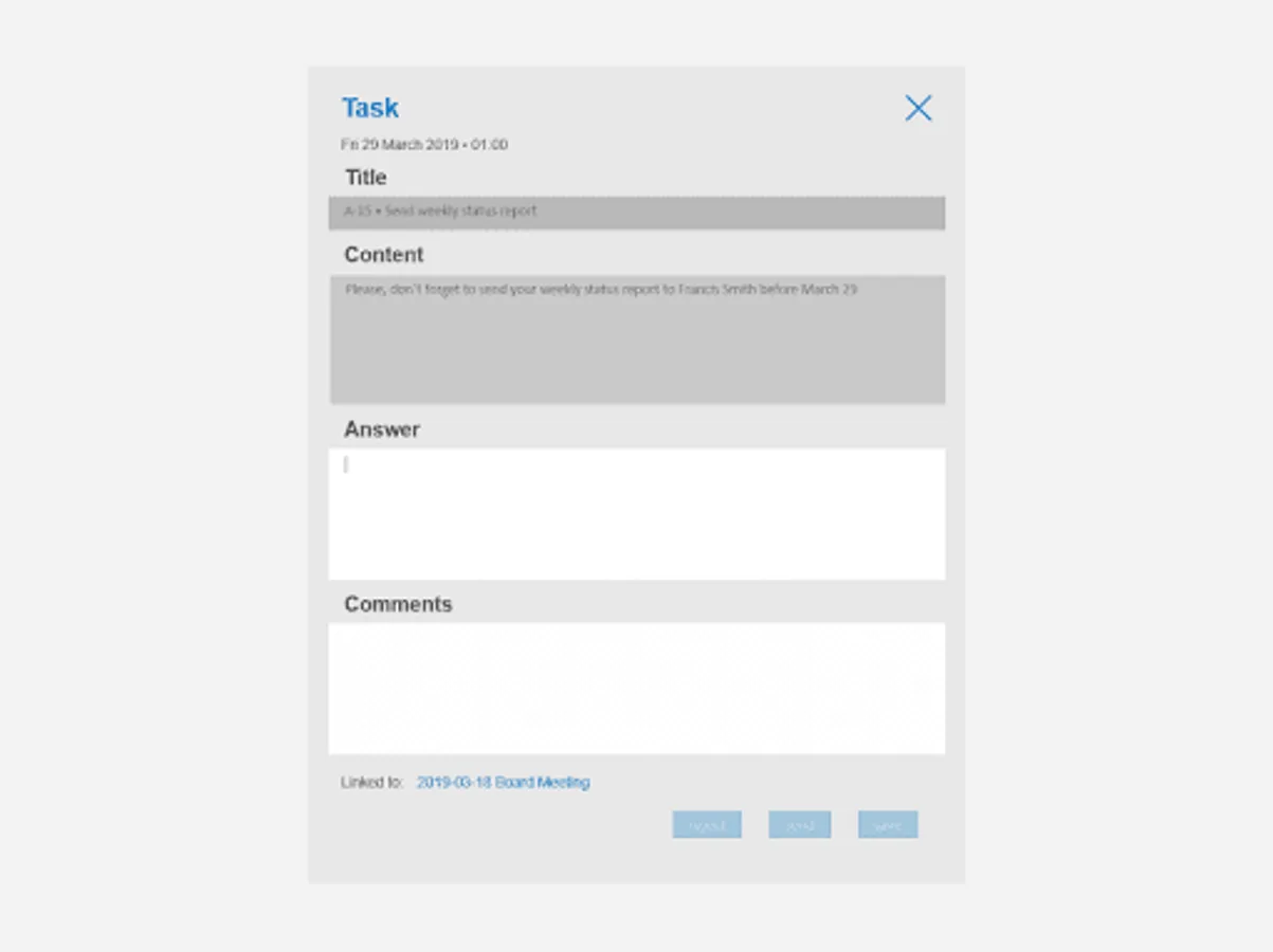 Meeting organizers create and manage meetings in their own online meeting dashboard. This gives them maximum control over information. Creating and editing agendas is really super simple. Change the agenda right up until the very last moment before the actual meeting. One simple action distributes documents to different target groups. Managing action items and reports has never been easier. You automatically build a digital archive.