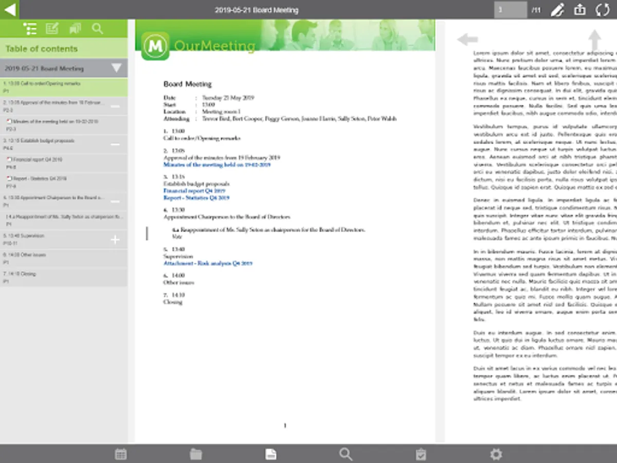 Preparing a meeting is so easy. For each meeting you receive just one PDF document, which includes the agenda, the attachments, minutes and incoming documents.