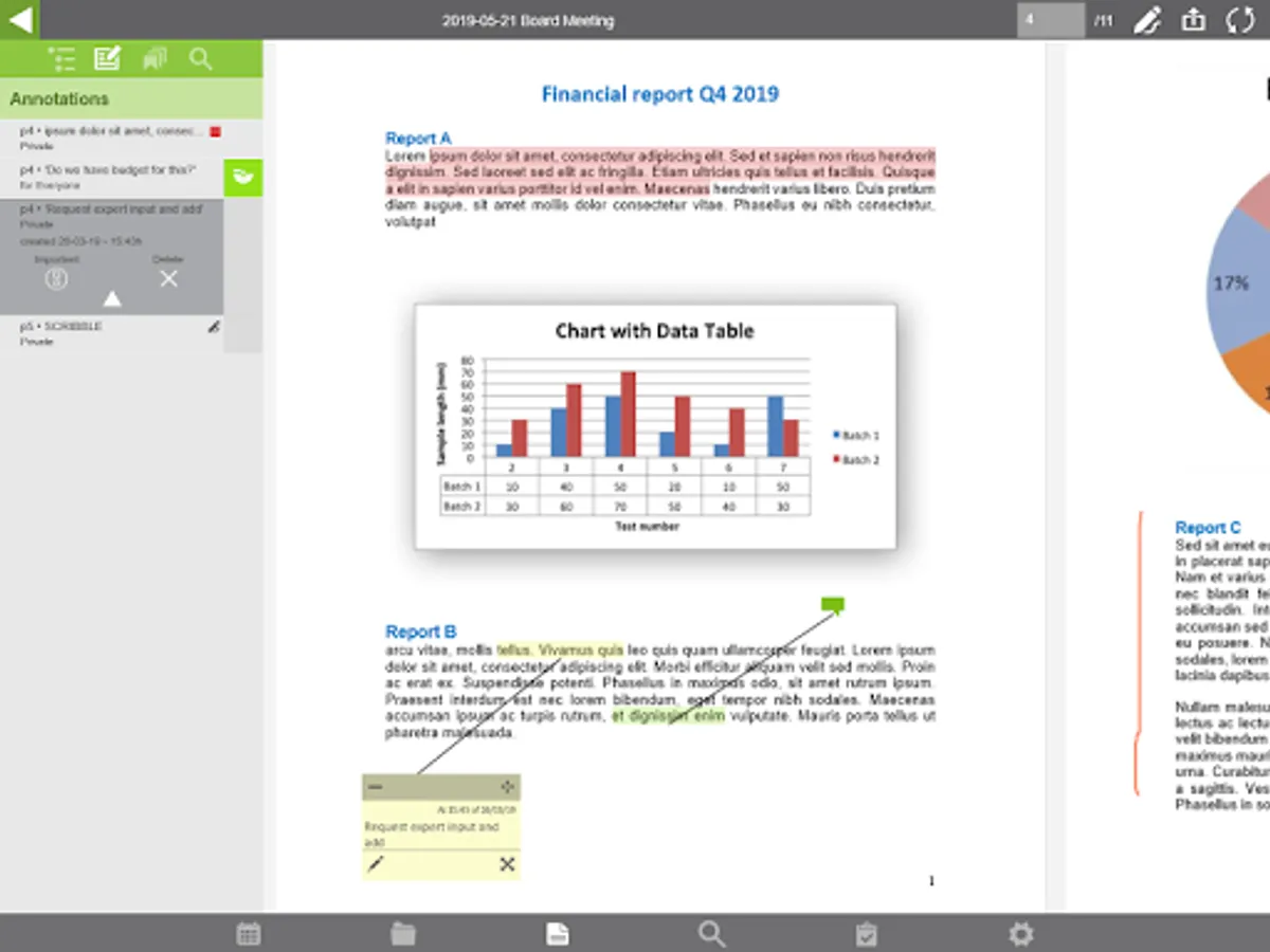 Annotating is simple, and you can share your notes with your colleagues during, but also before the meeting. Your notes are saved, and placed back into the document after an update of the agenda or attachments. OurMeeting supports cross-platform sharing, so you can also share with colleagues who use the OurMeeting App on iPads or Windows tablets.