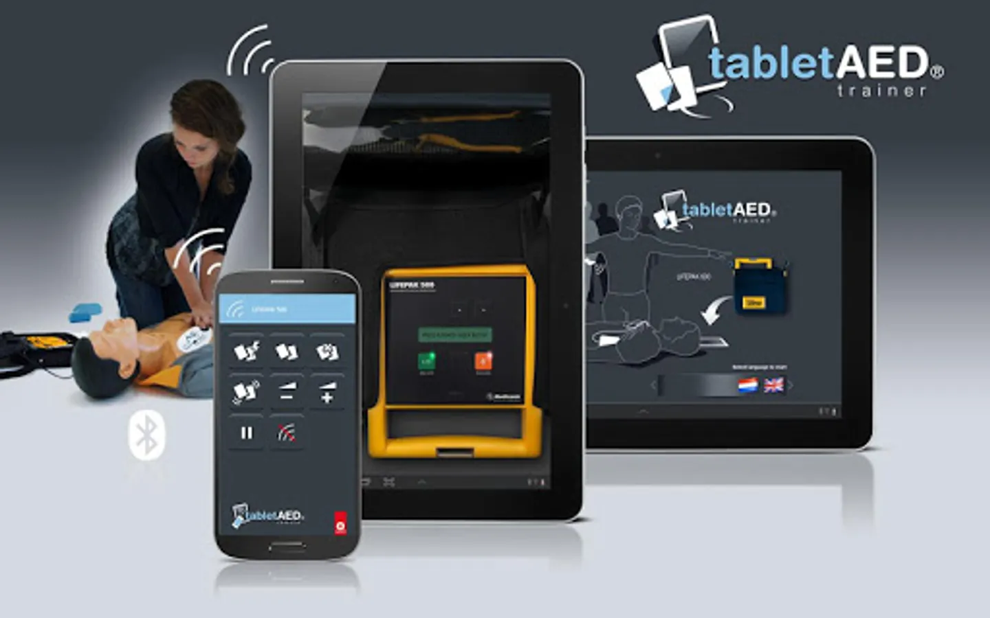 Discover the new way of training BLS&AED with digital AED trainers on your tablet. With your smartphone as remote control you can simply operate every TabletAED trainer. A professional low cost solution for every instructor.