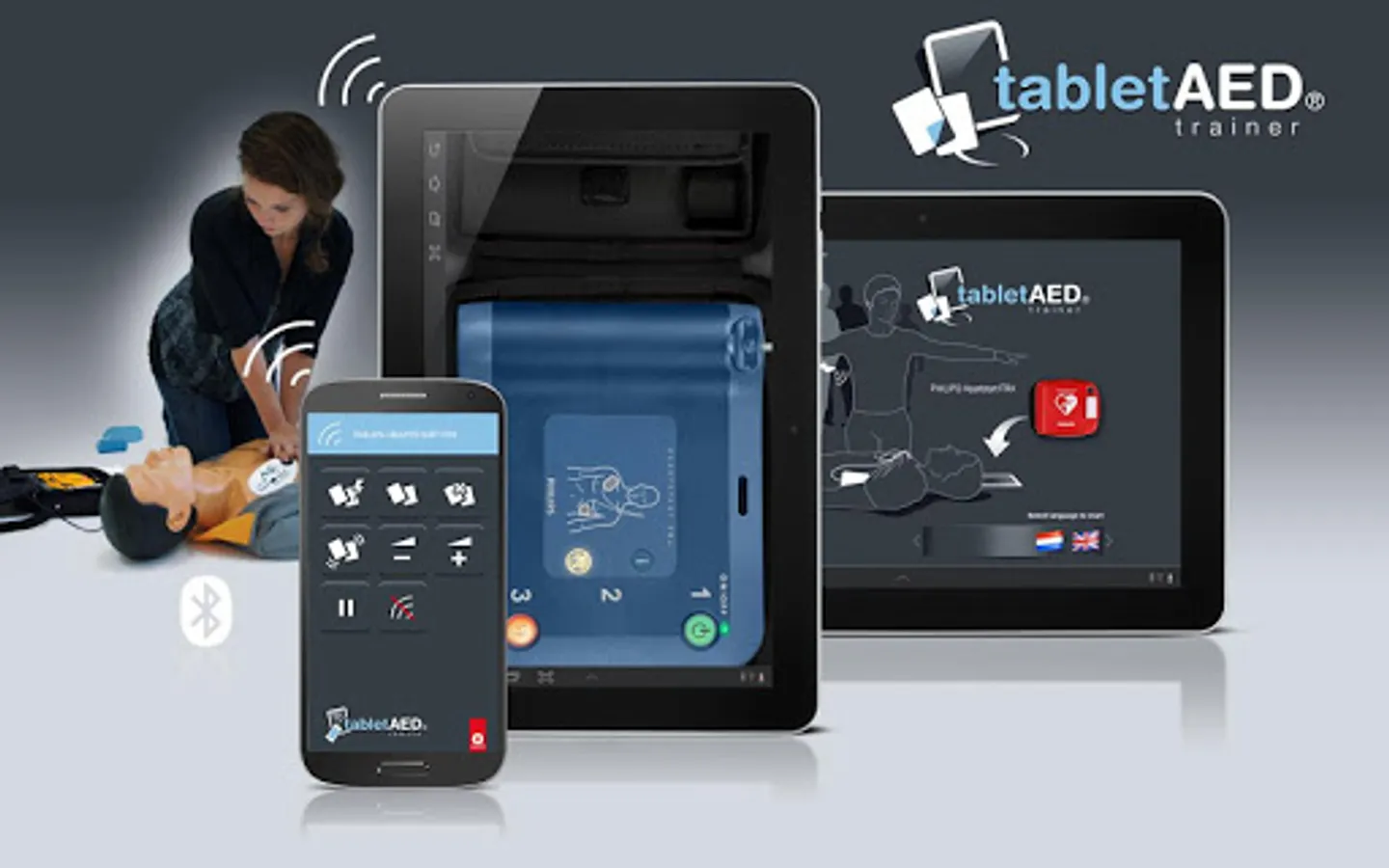 Discover the new way of training BLS&AED with digital AED trainers on your tablet. With your smartphone as remote control you can simply operate every TabletAED trainer. A professional low cost solution for every instructor.
