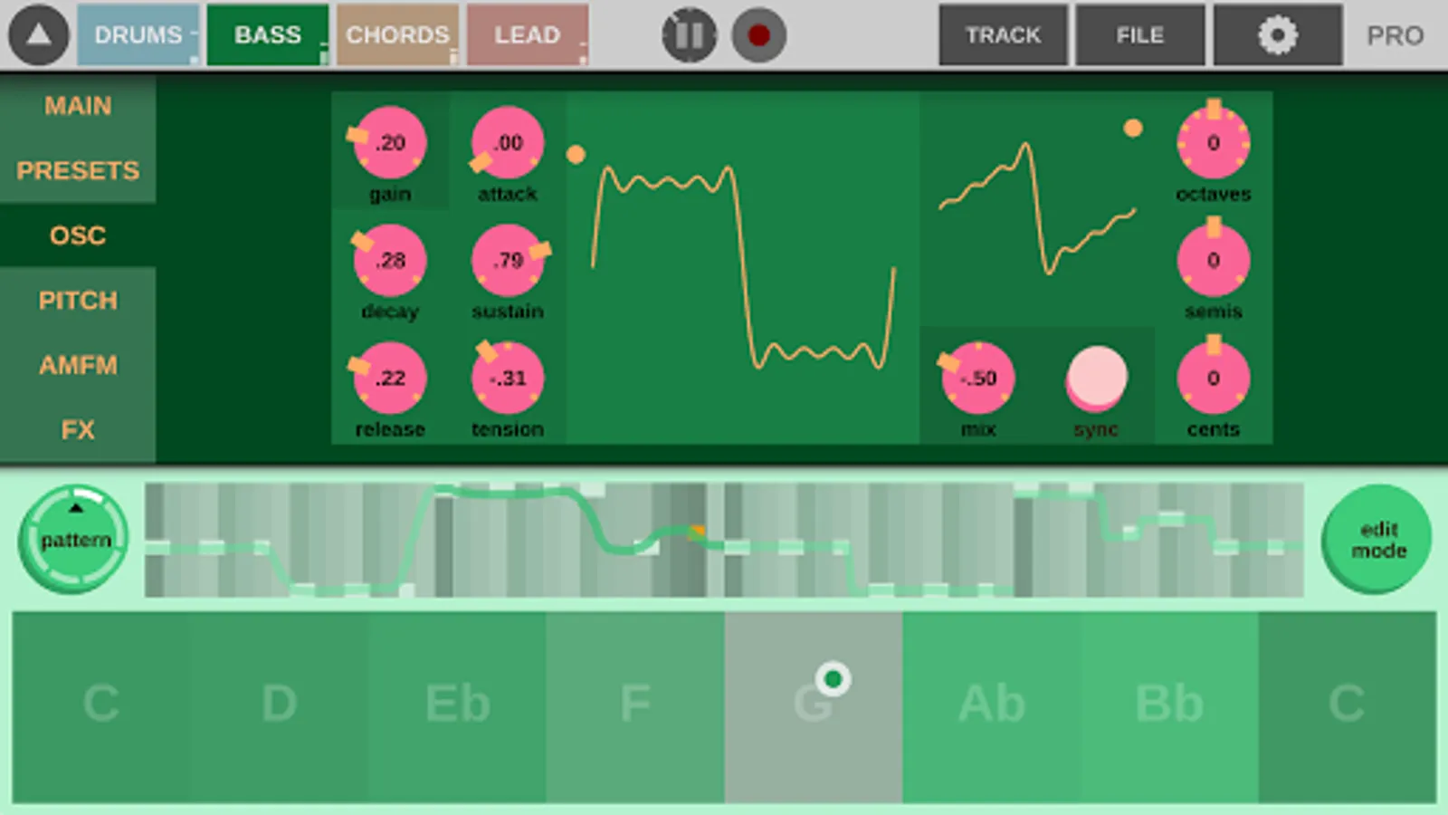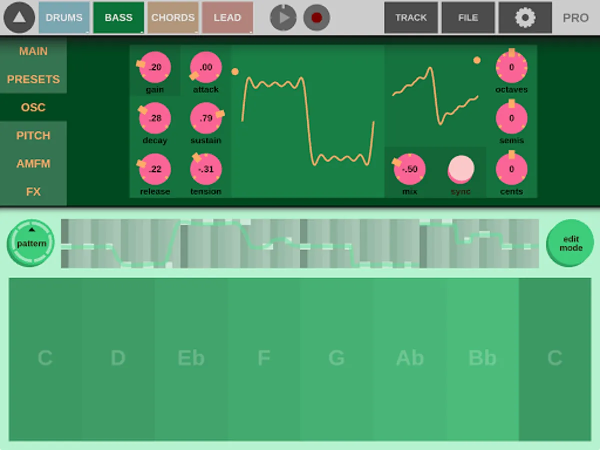 Create drum loops using pattern pads, and effortlessly sketch bass lines, chord progressions and melodies.