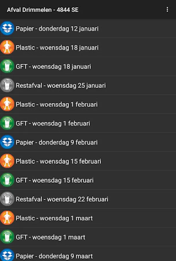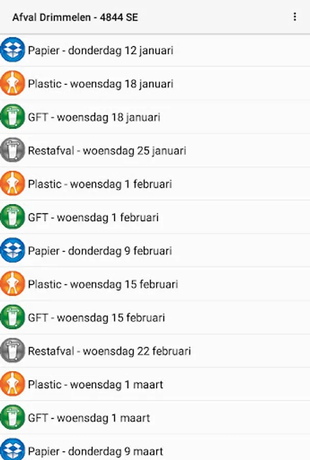 Digital waste calendar for the municipality of Drimmelen with notifications.