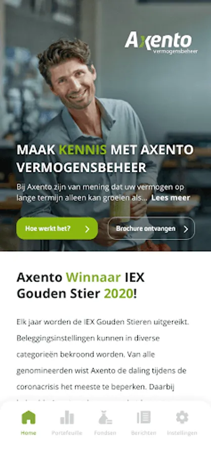 With the Axento app you can follow your portfolios, view the returns, read information about the funds we invest in, find our latest news items and much more!