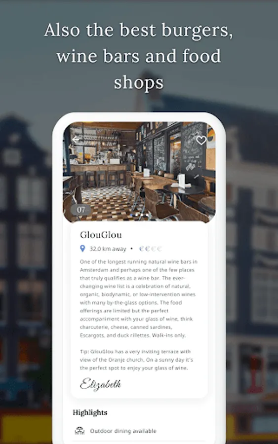 The most authoritative and up-to-date guide to the best food and drink in Amsterdam. Discover 250 of Amsterdam’s best food and drink spots, hand-picked by Elizabeth Auerbach, an independent expert you can trust. This app is completely free of any marketing, PR, sponsoring, advertising, and it does not use your data for commercial purposes. Simply navigate through 25 categories, each with a top 10, and find your next great meal or a good place for a drink. From fine dining to burgers and wine bars, this app contains recommendations for every wallet.