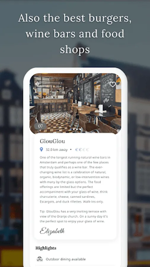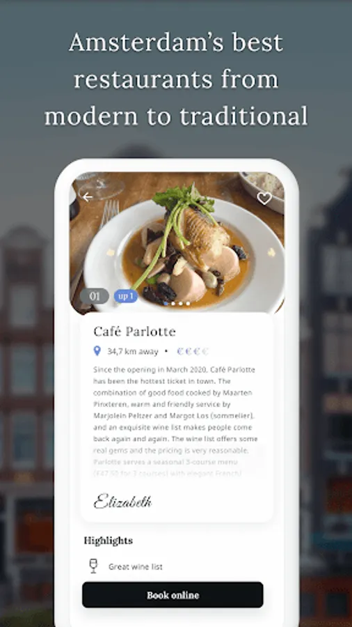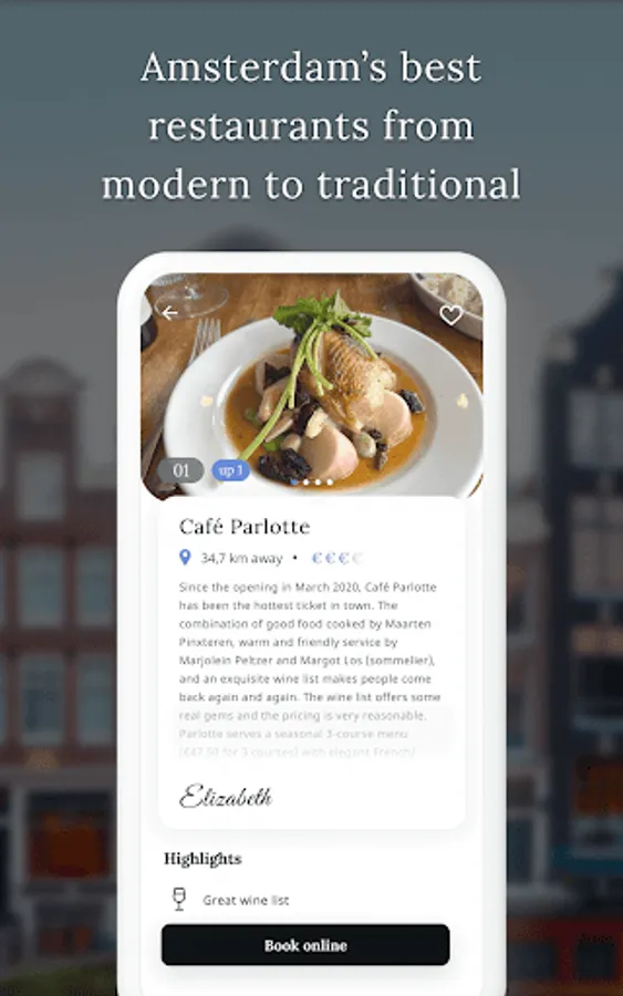 Each recommendation comes with an introduction and tips by Elizabeth, photos, opening hours, social media links, directions and tools to book easily from your phone