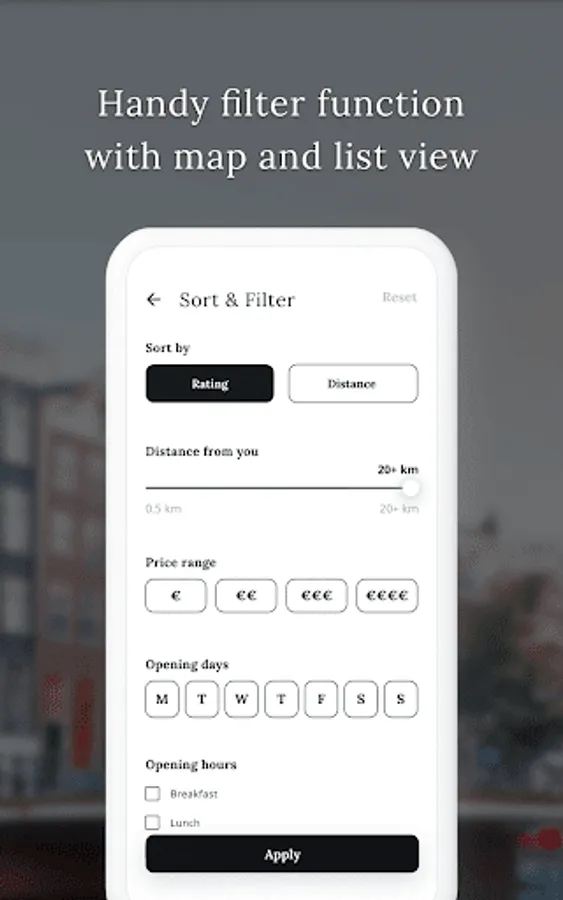 Use the map to quickly find restaurants & bars near your location or use the handy filter function to see what’s open today or any other day of the week. Filter options include: price range, meal time (breakfast, lunch, dinner), vegetarian options and more.