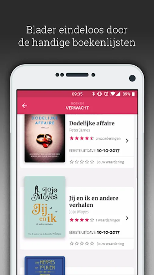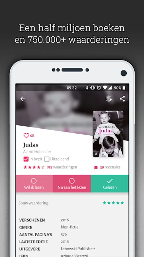 You can use the Hebban Book app without a Hebban account, but with it is much more convenient! Log in or create a free account and put the books you want to read on your personal bookshelf. Rate the books you read with stars. [Give the books you read a star rating.] This is how you help other readers find new favorite books.
