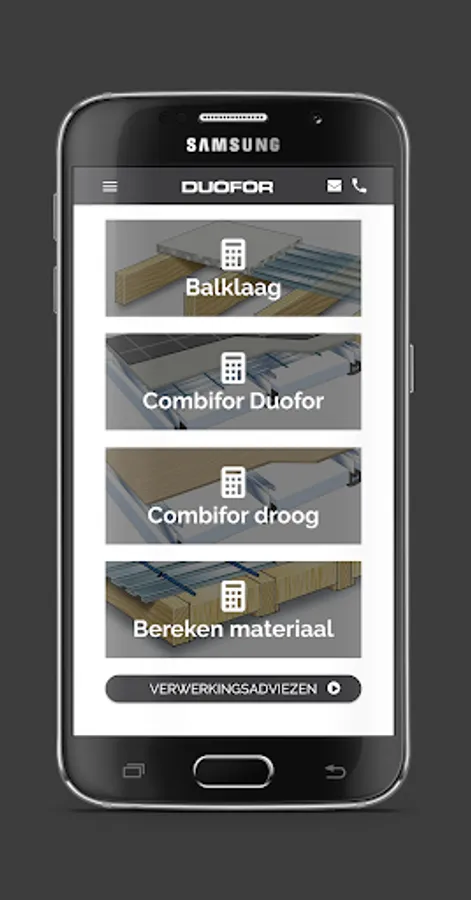 Quickly and easily calculate the material represents a Combifor floor and calculated Combifor material purchased directly from the app.