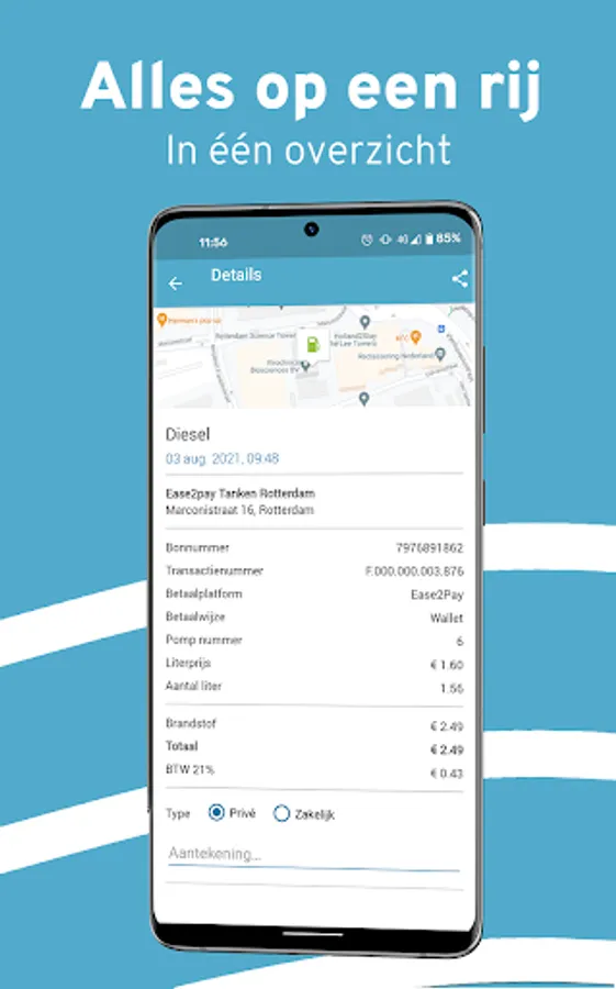 Ease2pay lets you release and pay for the pump comfortably behind the wheel of your car. So never go in to join the queue at the cash register. And from now on you will find all petrol receipts very handy in the app.