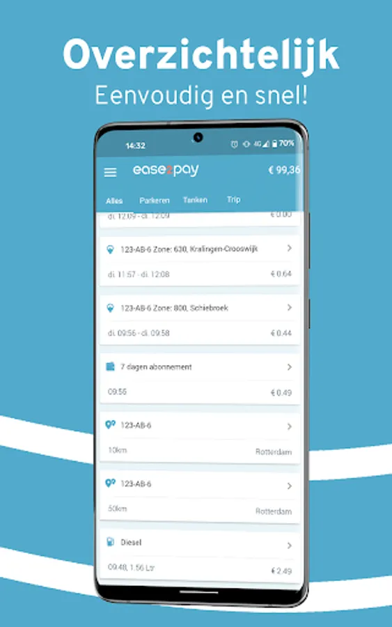 Ease2pay is the free refueling and parking app. With Ease2pay you can park and refuel throughout the Netherlands. The app ensures that you can park and refuel anywhere quickly and easily, without the hassle of receipts.
