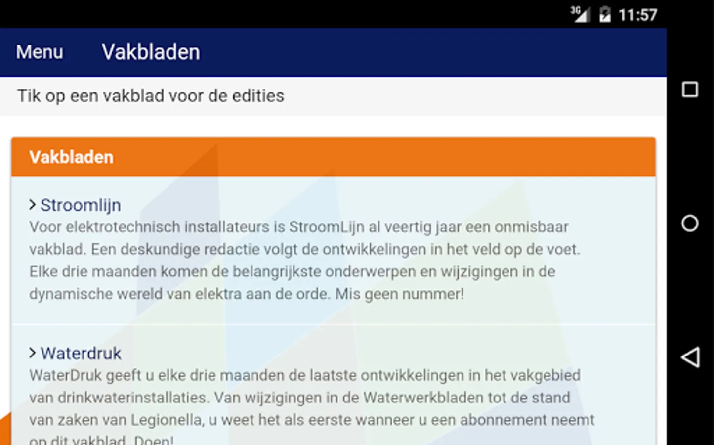 Download the installQ trade magazines app and stay informed of recent developments in the field of installation. The areas of interest are electricity, gas and water. Swipe through the magazines or use the handy search function, with which you can search by subject in the recent but also in older editions of the magazine. With the installQ app you as a subscriber always have your magazine in your pocket!