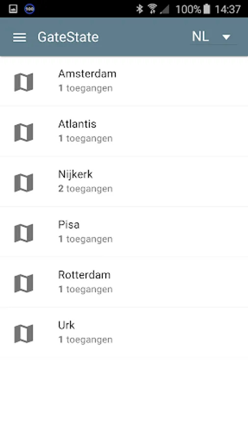 The Gate State EDNL platform facilitates omni-channel remote management, monitoring and access control of doors. In addition to a web portal and IVR (phone menu) it is possible to open the doors using this mobile app.