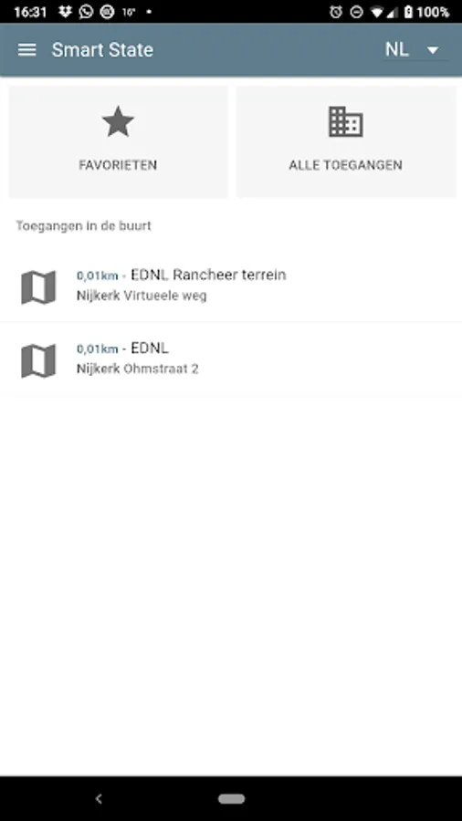 The SmartState platform facilitates omni-channel remote management, monitoring and access control of doors. Besides a web portal and IVR (phone menu) it is possible to open the doors with the help of this mobile app.