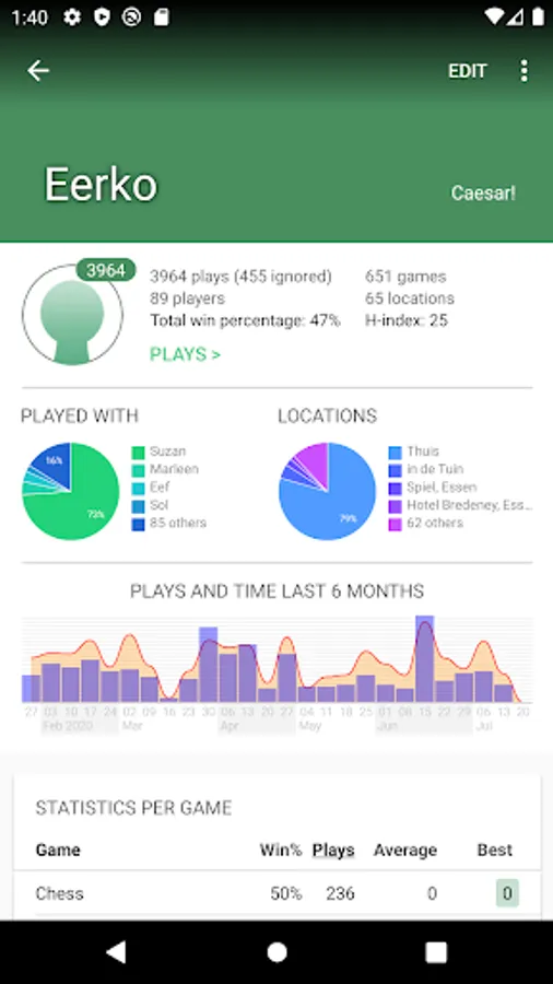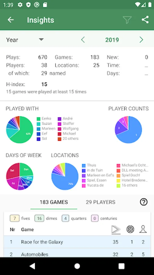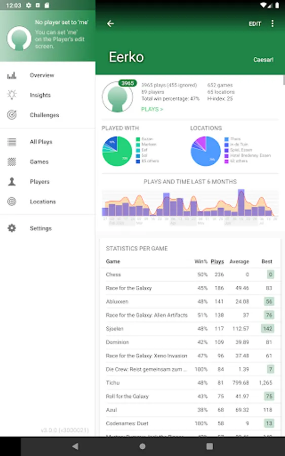 - Import existing plays from BoardGameGeek (BGG), Yucata and Board Game Arena (BGA).