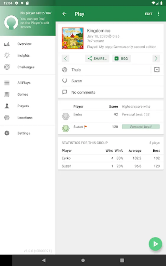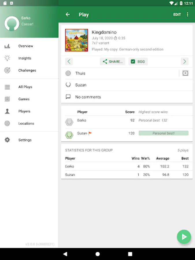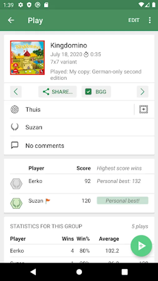 - Full automatic syncing with your BoardGameGeek (BGG) collection.