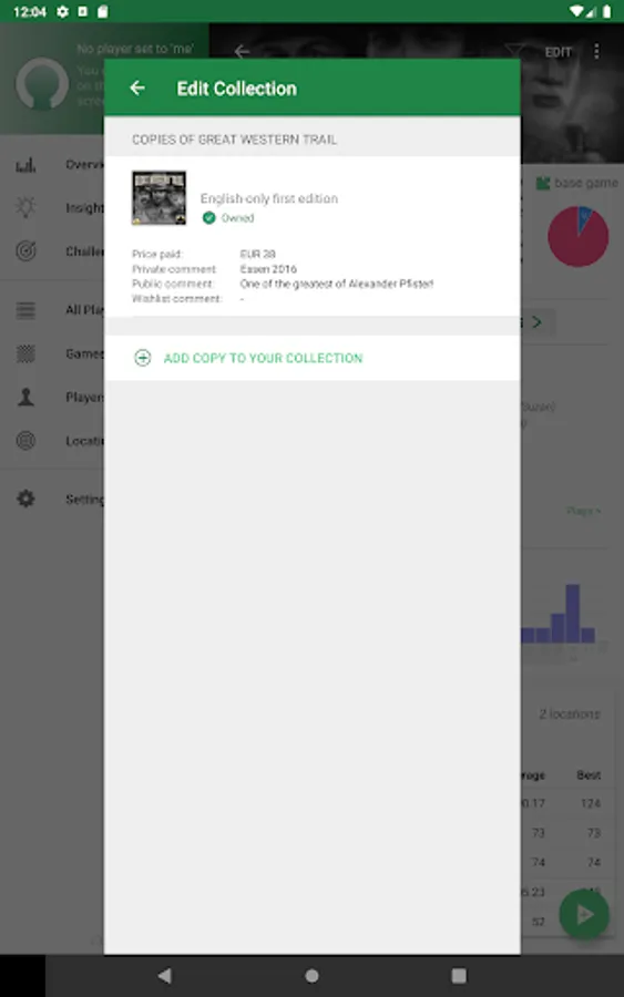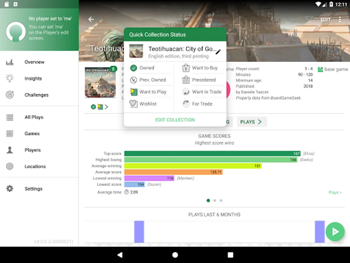 - Keep track of your collection and sync with BoardGameGeek (BGG).