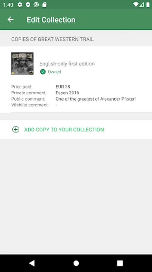 - Set status to Owned, Wishlist, Want to play, and much more.