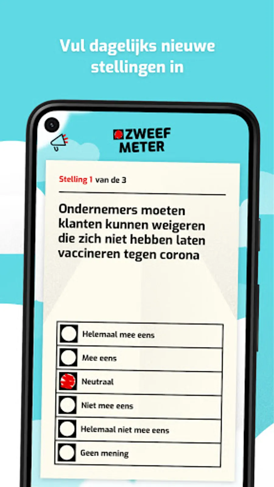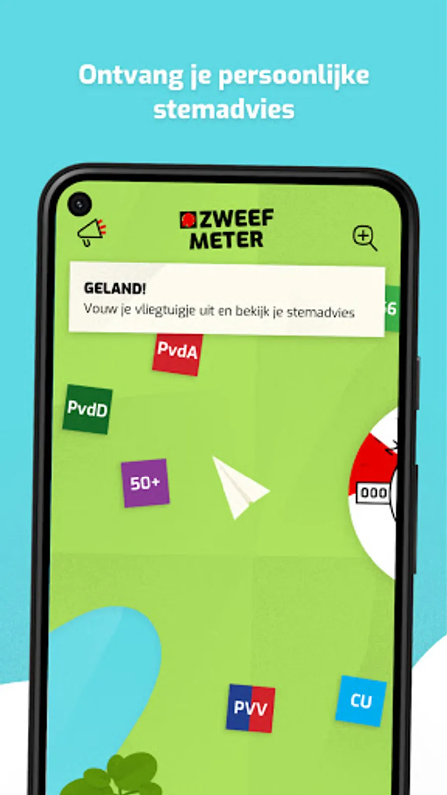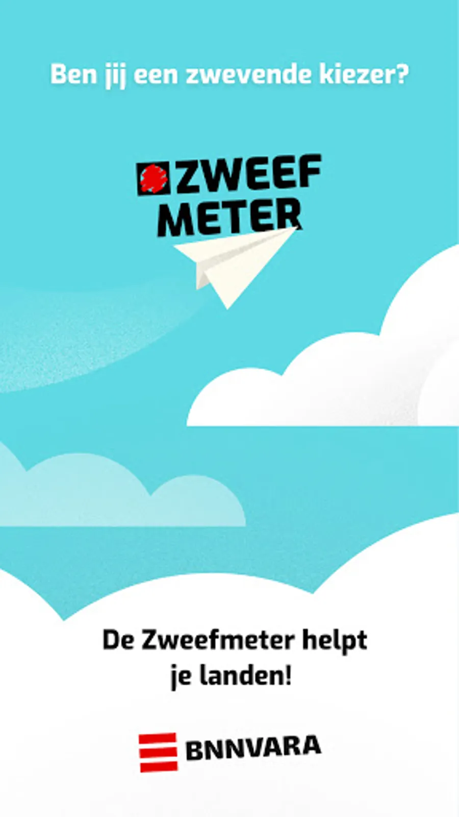 Elections are coming and that means making choices. What do you think is important? And with which party do you fit best? Are you still floating? Or are you almost out? Join the Hover Meter! The special app from De Vooravond that guides you through the political landscape and ensures that you will soon know what to vote in the voting booth. The app will ensure that you will float less and less on the basis of statements. Eventually, your plane will land somewhere in the political landscape on Friday, March 12. Close to the political parties that suit you and far away from the parties that do not match your ideas. You start with a blank ballot paper and first fill in 12 separate statements. From that ballot paper we fold a paper airplane that allows you to float through the political landscape. Three statements on a specific topic will be available every working day until Friday, March 12. As you have completed more statements, it will become increasingly clear where your plane will land. In all statements (in) equality plays a role, because at BNNVARA we believe that everyone has the right to equal opportunities. Occasionally every vote counts equally. Wherever you come from, whatever your education, whether you are eighteen or eighty-eight: that makes no difference in the elections. It is therefore very important that as many people as possible vote. This app helps you with that. Vote on March 15th, 16th or 17th. Because on those days we are all really equal for once.