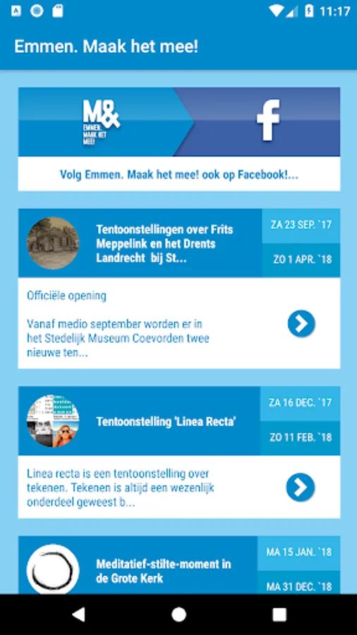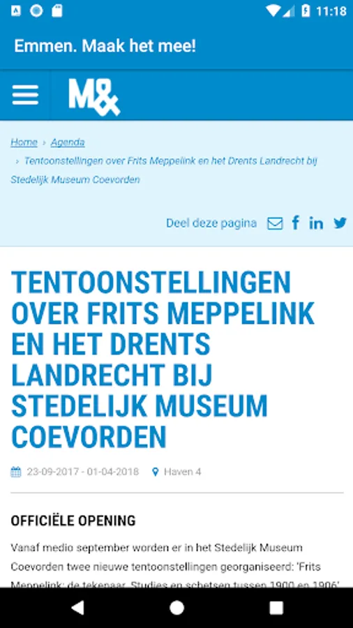 The 'Emmen. Experience it! " App gives users access to Emmen. Take it with you! Event calendar. This book contains all events and near Emmen in the coming period.