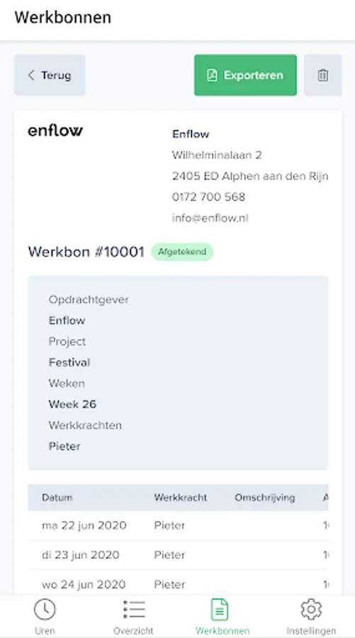 Provide insight into your company's productivity with timesheets. Easily track hours for workers, digitally sign work orders on location & easily export everything for administration.