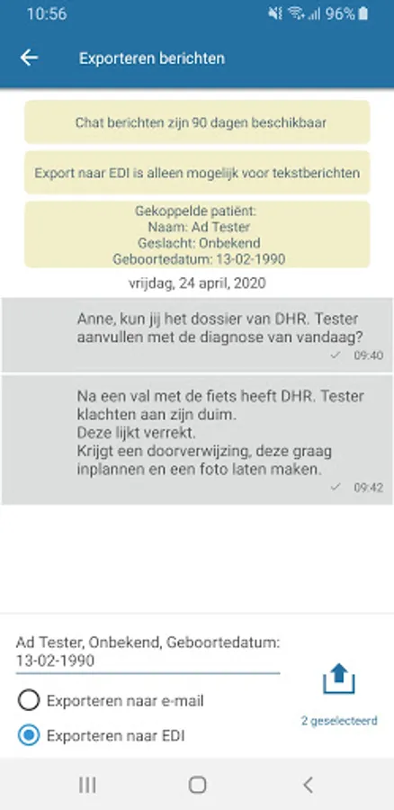 - Export to patient file. Easily export chat messages and attachments from ZorgMail Chat to your information system or to your secure e-mail.