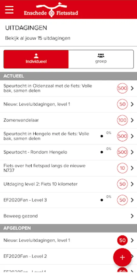 To make and keep cycling fun and challenging, you can always take on new individual and group challenges. So you can also invite others to cycle with you. And with these challenges you can earn bonus points again.