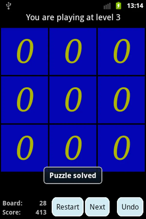 The object of this game is to end up with a board filled with only zero's. When you tap on a field the number in this field and all the neighbors (horizontal, vertical and diagonal) are decreased by one, hence the name minusOne.