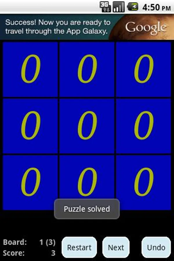 The object of this game is to end up with a board filled with only zero's. When you tap on a field the number in this field and all the neighbors (horizontal, vertical and diagonal) are decreased by one, hence the name minusOne.