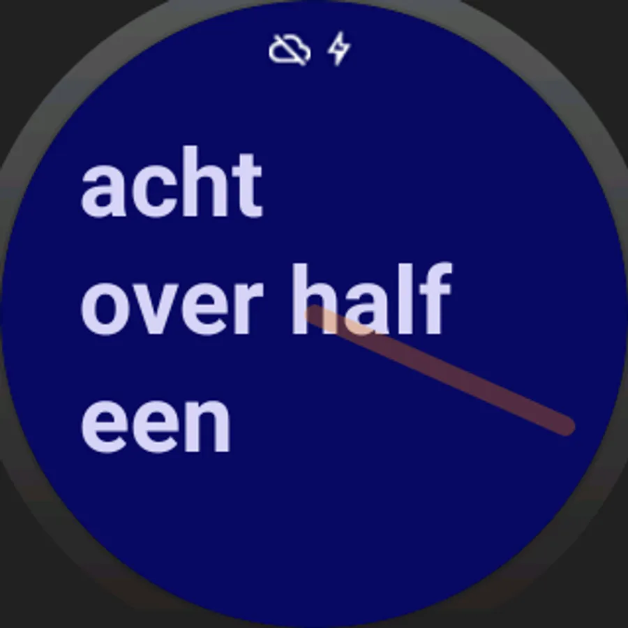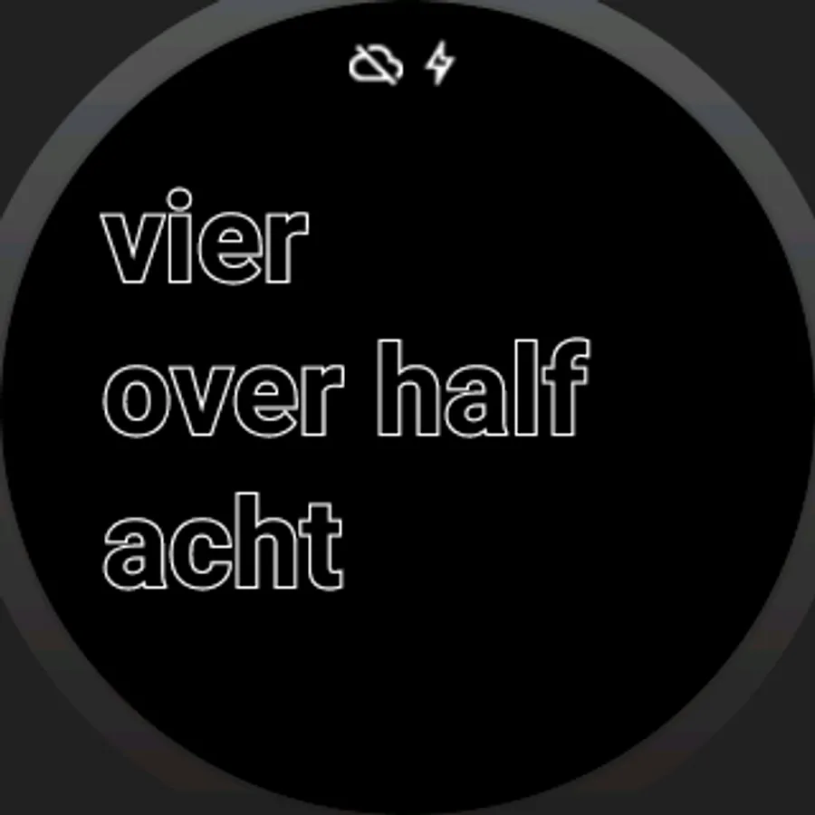 This dial for Android Wear watches displays the time in Dutch text.