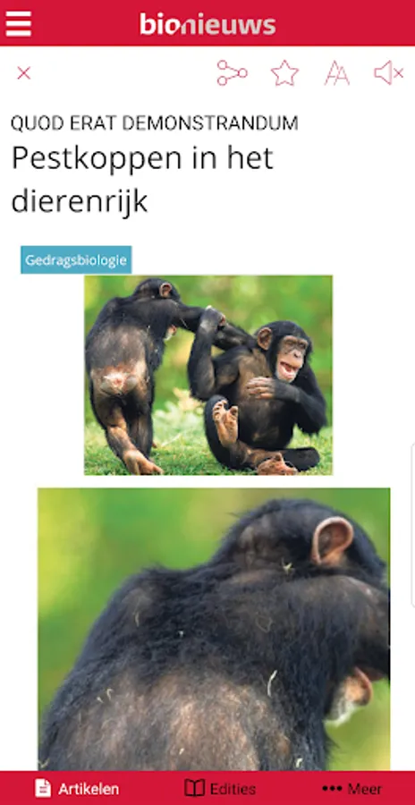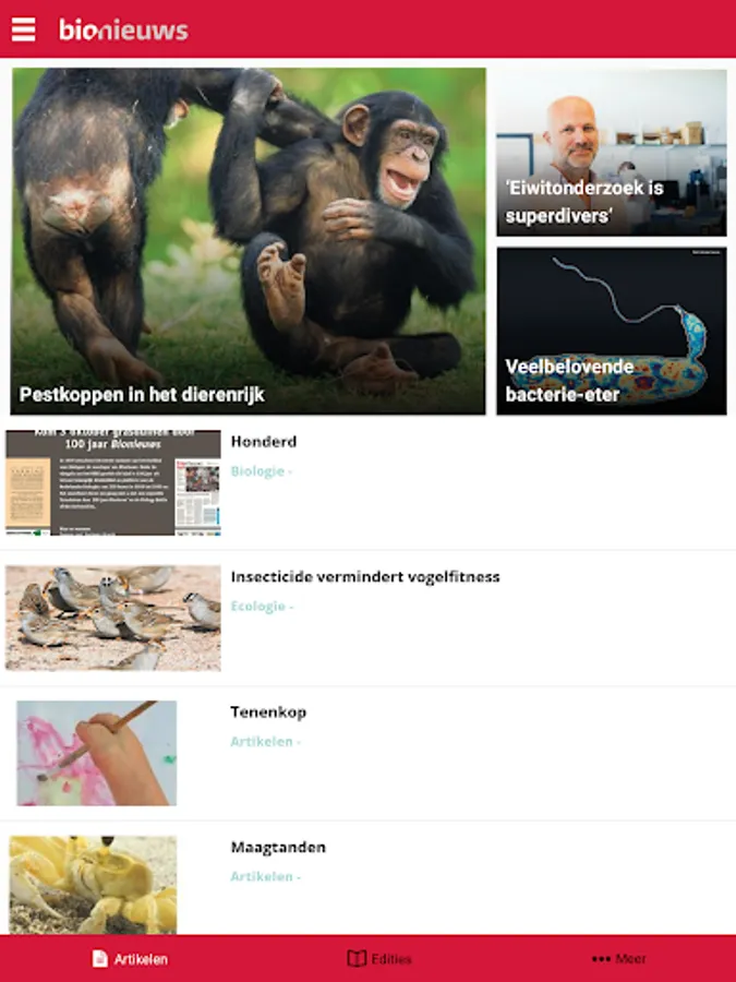 In this app you will find a selection of news items and photos that appeared in the newspaper. Members of the Netherlands Institute of Biology can also read the current newspaper and previous editions here completely digitally