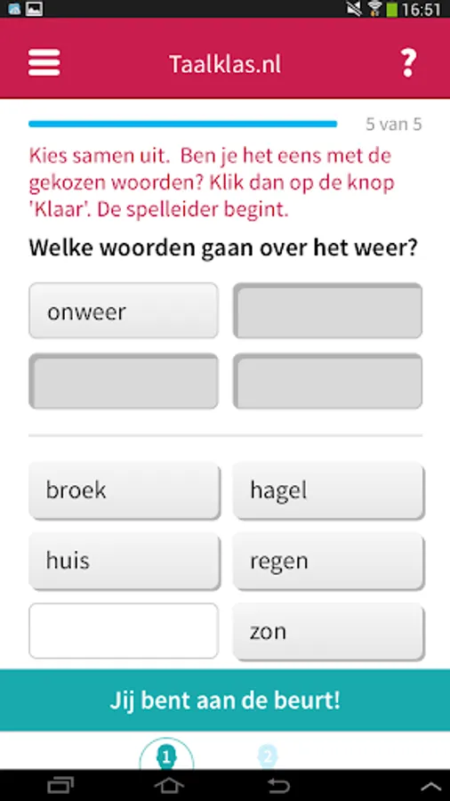 The app offers a variety of exercises. For some exercises, the players give same answer, others in turn. Sometimes you can also edit each other's answers. If you exercise along with the app, there is often a conversation going, so you learn more about the subject.