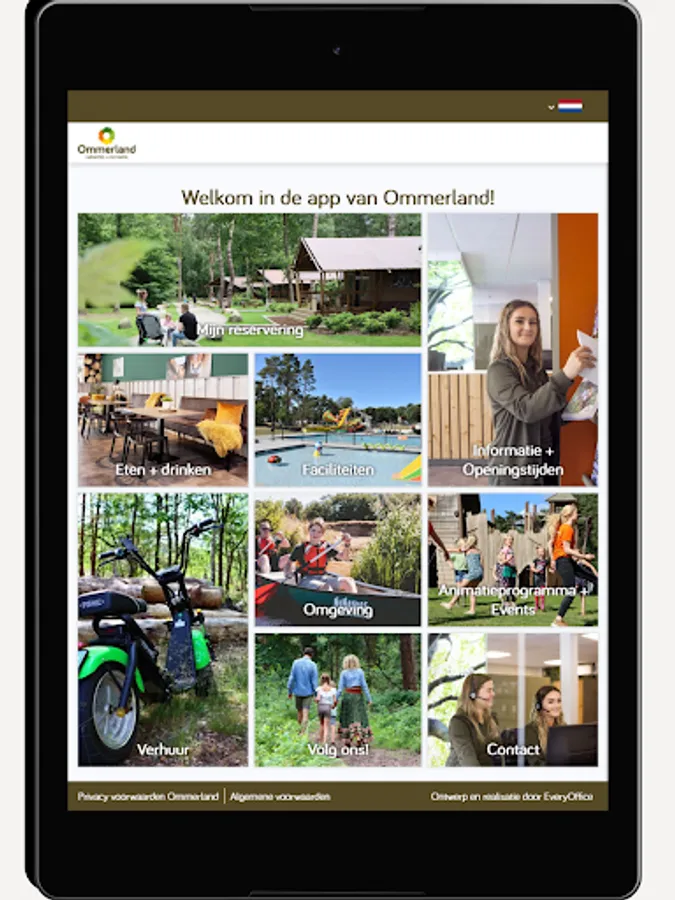 In the Ommerland app you will find all the information you need to enjoy your stay. This app is your digital holiday guide! Before you arrive, view all the activities that will take place during your stay, manage your reservation, view all facilities and read everything you need to know about your stay at Ommerland via the heading Information + Opening hours. This app will also come in handy during your stay. Simply make a reservation for our restaurant, our beauty salon, at the pony riding school or at the outdoor center. But ordering food online or renting a bicycle is also very easy. Do you want to know what fun things to do in the area? The app also answers that.