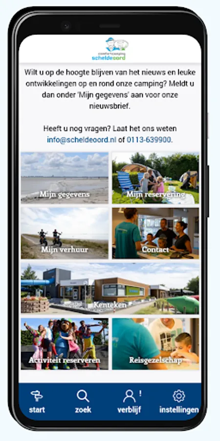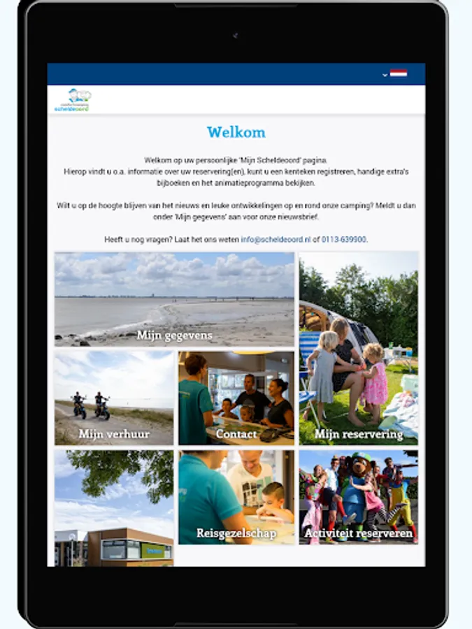 With the Scheldeoord App you always have all the information you need before or during your stay at hand. Your reservation, opening times, activities and fun outings in the area.