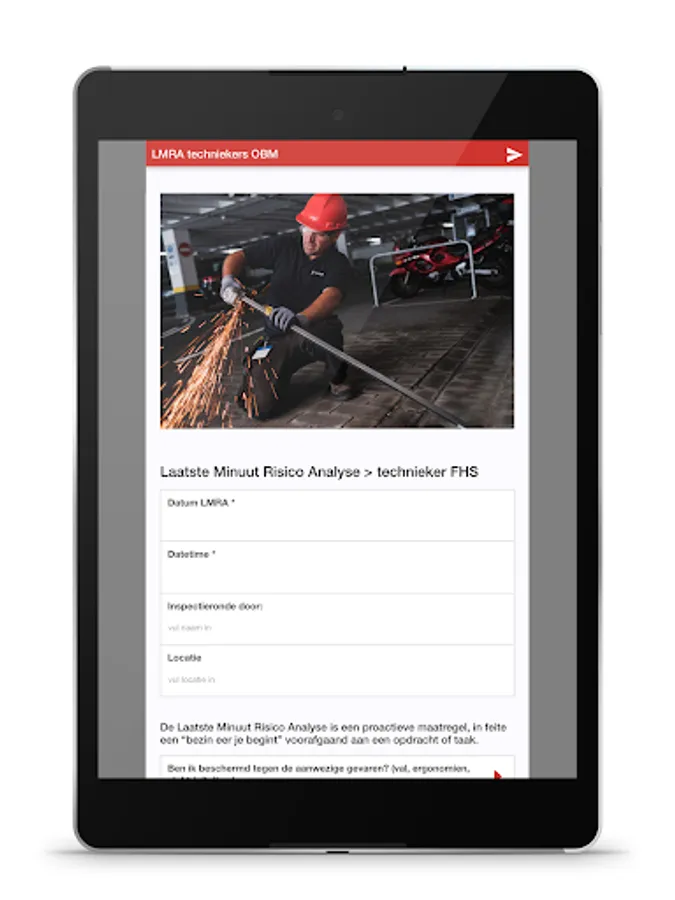 Think of: toolbox, MOS (report on safe situation), LMRA (last minute risk analysis), WPI (workplace inspection), project plan, work order, HVAC, inspection of the post, maintenance, inspection, registration, report, ...