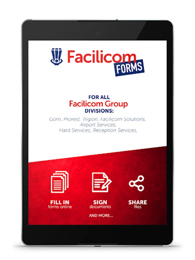 Use the Facilicom Forms app to complete all digital forms and upload documents. You will find different forms and documents for each division that you can use to perform your tasks.