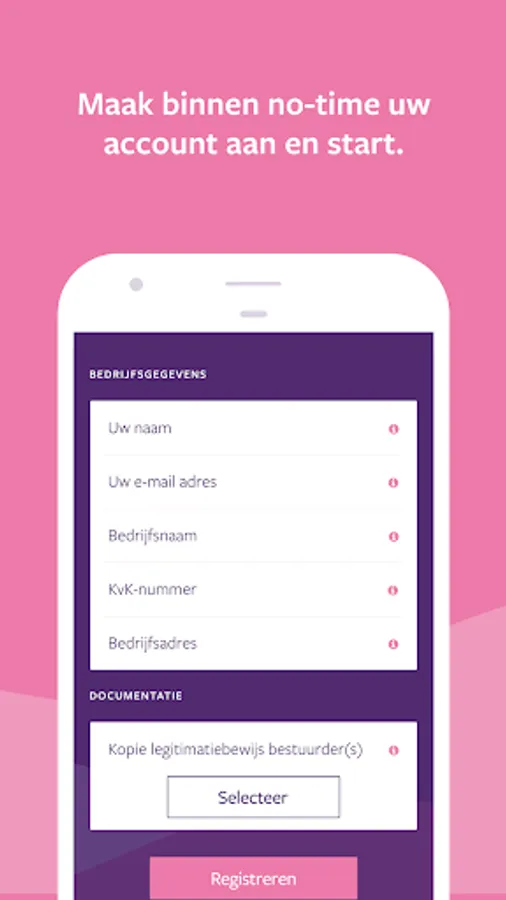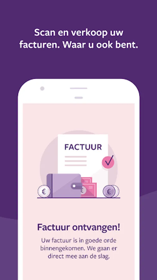 Before we can start paying your invoices, we would like to get to know you better. You can easily upload this data with a photo in our app. We will assess your request within 24 hours. Then you can immediately start selling your invoices. Do you do this before 2 pm and is everything agreed? Then we will take over the invoice the same day and your money will be in your account the next day.