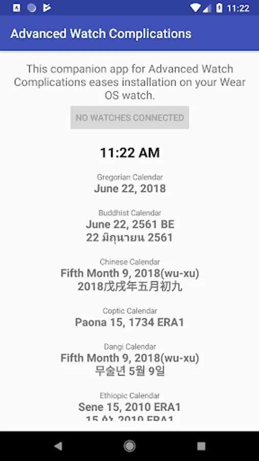 Advanced localized date and time watch complications for Wear OS. These complication can be added to any watch face and allow display of all possible date and fields in any language and calendar.